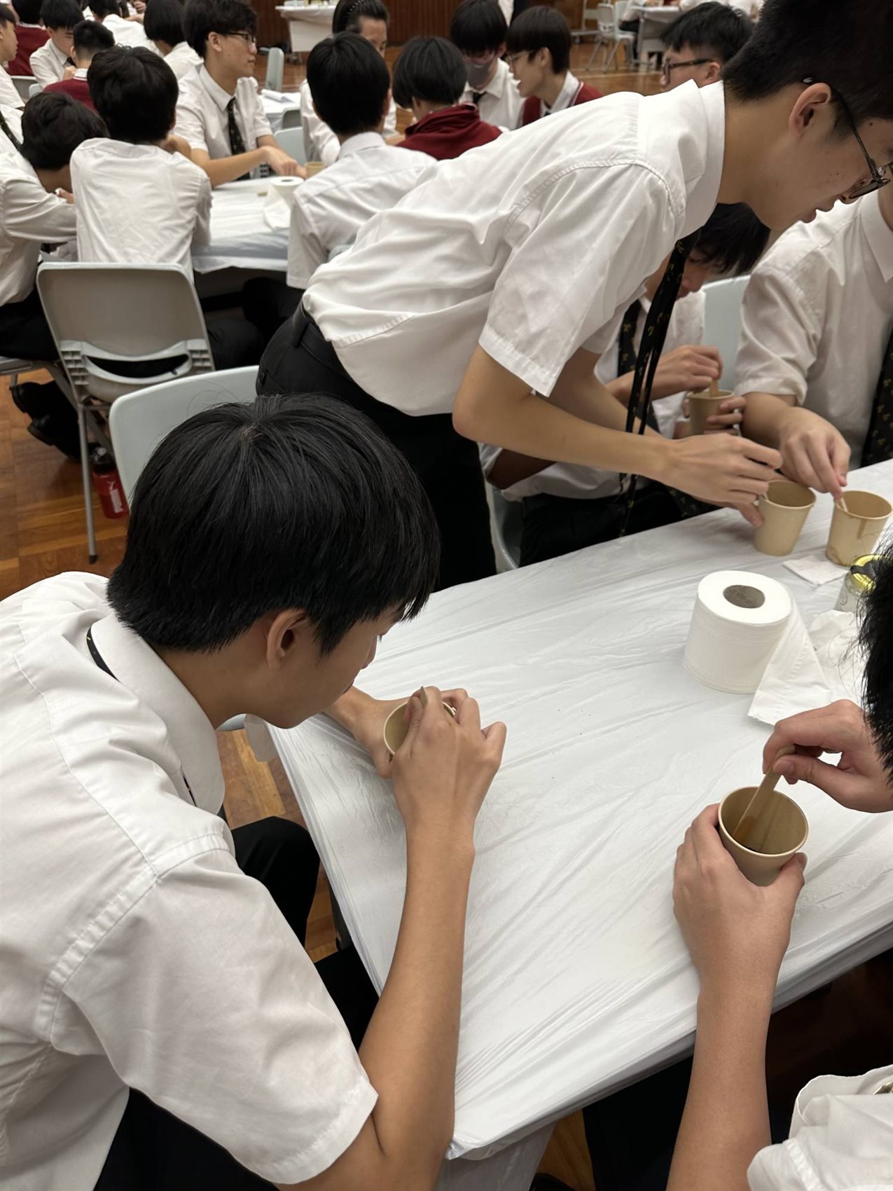 德育、公民及國民教育組參與了香港公平貿易聯盟舉辦活動 — 咖啡渣磨砂膏工作坊,活動於二零二四年四月三十日的中五德育、公民及國民教育課堂中順利完成。藉工作坊,以咖啡渣實踐升級再造(Upcycling),製作咖啡渣磨砂膏,並向學生闡述咖啡貿易中的不公。同學反應熱烈,積極投入。
