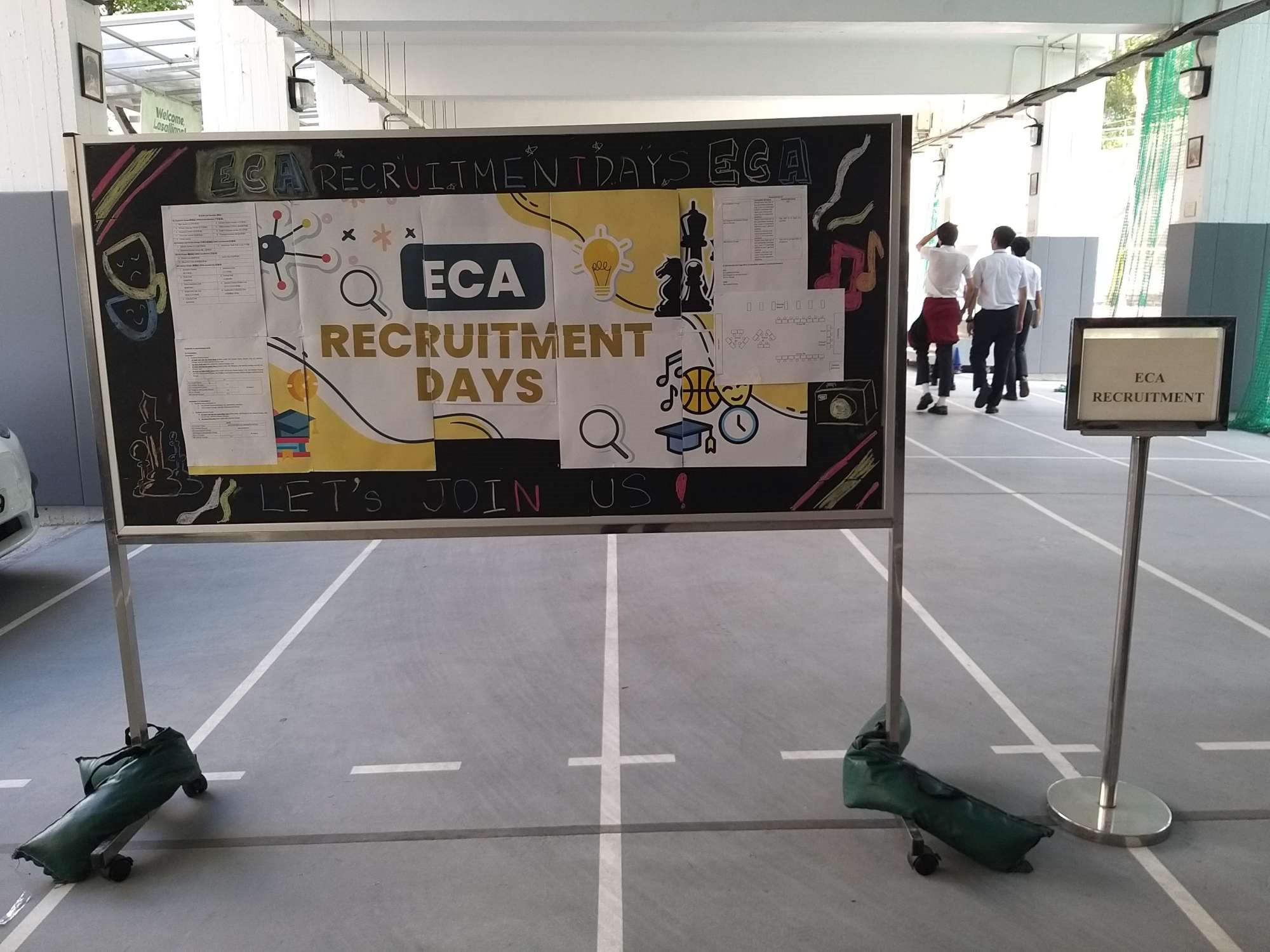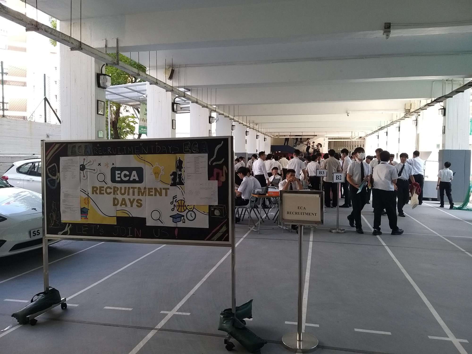 The ECA Recruitment Days were held on two consecutive days, 16/10/2005 and 17/10/2025, during lunchtime. Various clubs and societies, including A2 (Uniform Groups), B2 (Religious and Service Groups), B3 (Art Groups), and B4 (Interest Groups), set up counters in the covered playground to recruit members. The event was organized smoothly and successfully, inviting all students to join different clubs and societies. Students actively participated in the event.